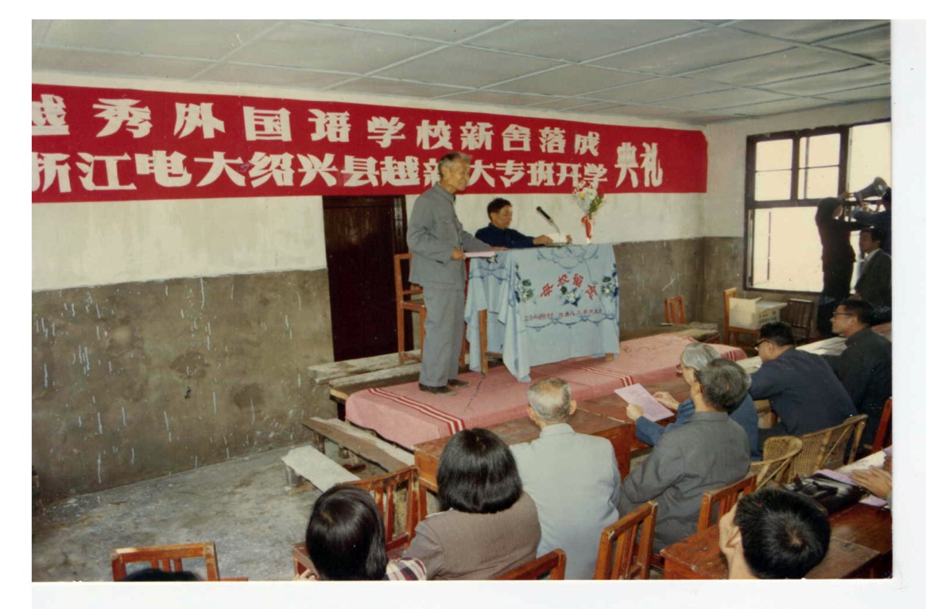四十年前,当中国的改革开放刚刚拉开帷幕,绍兴教育界有一位年近古稀的老教育家、民盟盟员——邵鸿书先生,敏锐地观察到国家的对外经济对实用性外语人才的巨大需求。19808月,在绍兴地委统战部的指导和政协支持下,由邵鸿书先生倡议并主持,在绍兴六中和树人中学分别开办的两个外语夜校补习班(绍兴六中的英语补习班,树人中学的日语补习班),于19813月,由绍兴市政协牵头,绍兴市民革、民盟、农工、民建四个民主党派地方组织出面,民盟绍兴地区委员会具体负责申请,将两个外语夜校补习班合并,经绍兴县革委会[1981]125号文件批准,更名为“绍兴越秀外国语补习学校”。