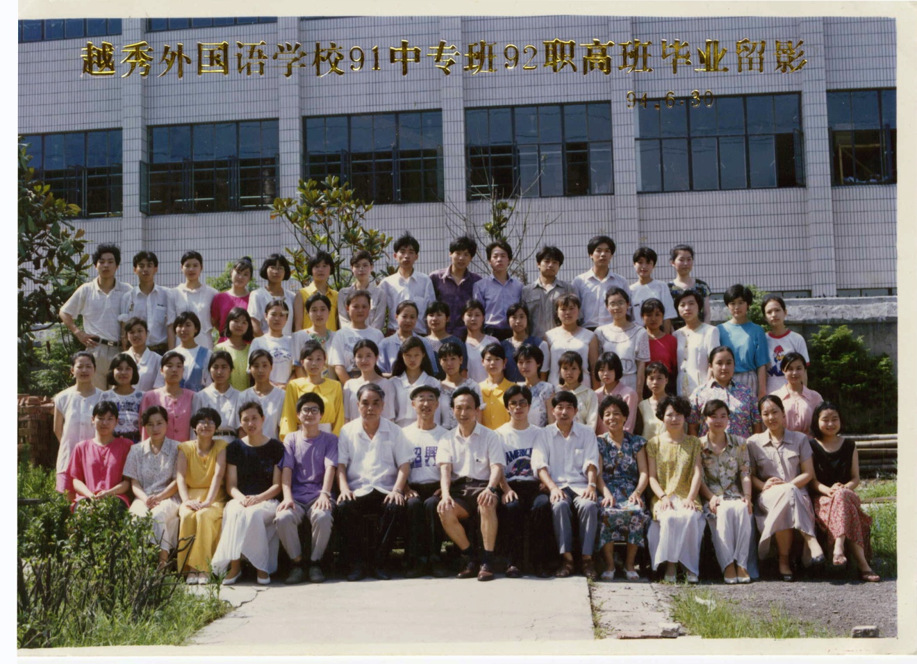19947月绍兴越秀外国语学校91中专、92职高班毕业师生合影