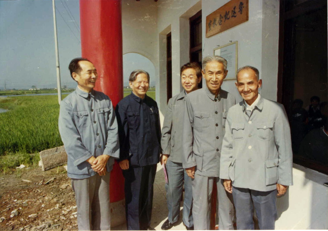 19975月,原全国人大副委员长、民盟中央名誉主席费孝通(前排中1)在绍兴市领导的陪同下,视察了越秀并与绍兴市委副书记陈章方(前排左1)和民盟市委的干部合影