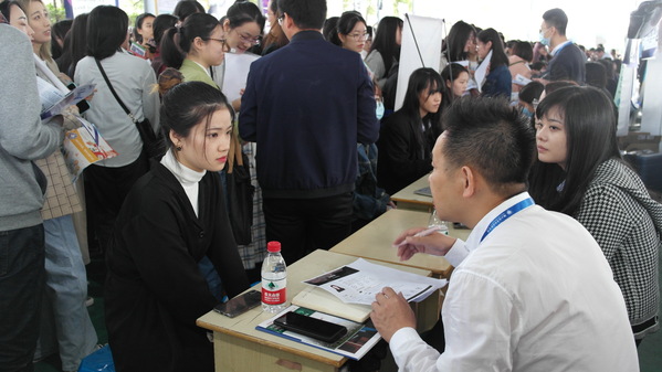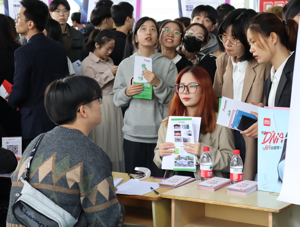 当日会场气氛很好,应聘者都手持自己精心准备好的简历和自荐信,满脸自信地穿梭于人流之中,积极与招聘人员交流,主动了解用人单位的情况。来自2020届商务英语专业的毕业生秦志颖是前任英语学院学生会主席,如今在宁波美弘进出口有限公司担任外贸业务员,她表示如今回到母校进行招聘宣传,一是出于对越秀人才培养质量的肯定,二是想报答母校,吸纳更多的人才为公司注入新鲜血液。