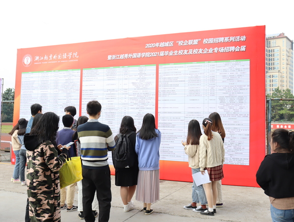 10月25日,浙江越秀外国语学院2021届毕业生校友企业专场招聘会在稽山校区风雨篮球场举行,吸引了我校2021届毕业生和其余年级的近万名学生参加,本次招聘会是由浙江越秀外国语学院校友总会和学生处共同举办。“校外就业实习基地”签约协议与“优秀校友就业创业心得分享会”同期举行。