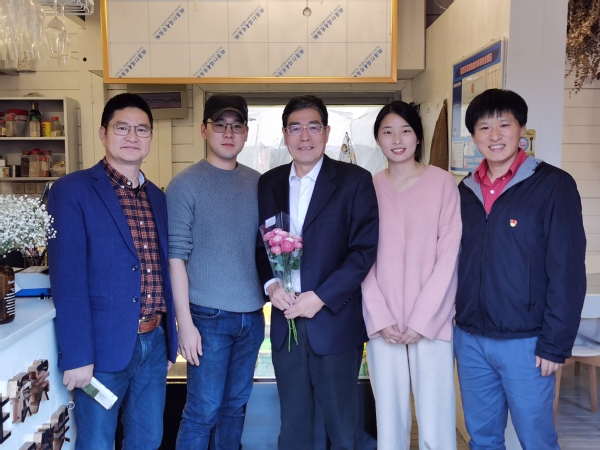 徐校长随后来到了学生创业咖啡屋,屋外小广场上,几位外教分别带领着十余名同学正在开展外语沙龙活动,有创业团队在讨论创业策划书,有招聘会后用人单位与创业学院讨论后续开展校企合作培养电商创业人才的工作……。店长国际商学院大四学生詹方天、英语学院大四学生娄胜男正在为师生现磨制作咖啡。徐校长开心的强调“今天我买单,大家一起听听学生创业咖啡的故事。”“这个是巴西咖啡豆,这个是……”娄胜男同学从咖啡豆的选品与甄别、咖啡文化与外语学习的融合,再到咖啡屋创业一年多来的经历与体会娓娓道来。“非常感谢学校给予我们宝贵的创业实践机会和场地,为了做好咖啡,我们去了法国,去了星巴克,为了创业,我们学习制作标书,尝试着自己设计装修,学着做营销,有喜悦、有彷徨,但成长的收获满满”。徐校长欣慰的边品尝着学生自己制作的咖啡边与他们交流,徐校长从自己国外求学和工作与咖啡文化的结缘,讲到促成广东外语外贸大学学生创业咖啡屋的产生和成长,再到学校为什么选择把咖啡屋从社会经营改为学生创业经营、创业教育实践与人才培养的关系。并把广外学子潜心求教学习咖啡文化与制作的创业案例分享给两位学生店长,勉励他们成为优秀的创客和复合型人才。当得知两位店长在忙碌的创业中同时都过了雅思考级,并有准备赴国外深造的想法,徐校长连声点赞。两位学生也给校长献花,感谢学校的培养和关怀。