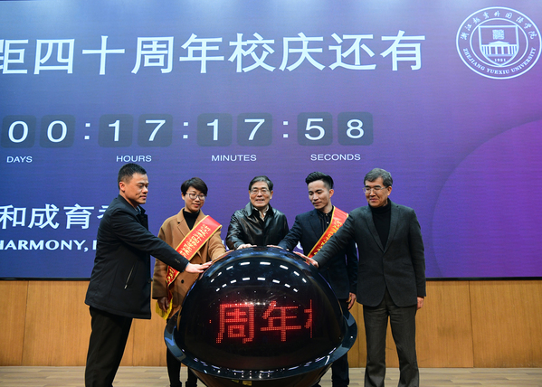 活动伊始,校领导徐真华、叶兴国、朱文斌和校友代表王怡、魏昉昊共同启动了40周年校庆倒计时100天时钟。随着时钟的滴答声,校庆的筹备工作也正式进入最后的冲刺阶段。