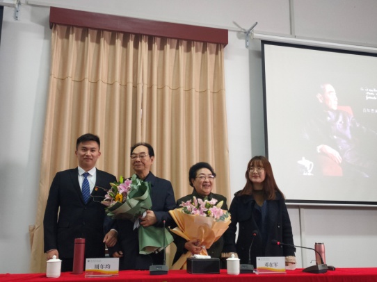 这是周尔均少将与夫人邓在军总导演莅临越秀进行周恩来同志事迹分享,阿拉伯语1701班代表王俊炯与其合照留念。