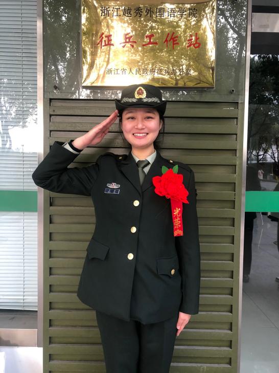 从大一时懵懂无知的新生到一名武警战士,又从一名武警战士到教官队的副区队长,我与迷彩有着说不尽的缘分。每年一次的大合照,我们穿着常服,严肃又活泼,充满朝气。青春有许多颜色,我很庆幸在越秀加入了教官队,让我在属于我的青春回忆中拥有了一抹绿色。