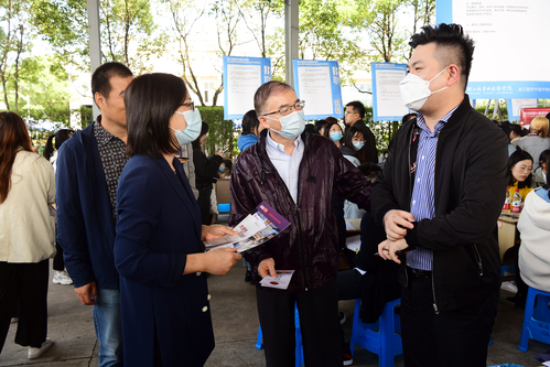 2021年10月17日,学校校友总会、教育发展基金会与学生处共同主办的“浙江越秀外国语学院2022届毕业生校友及校友企业专场招聘会”在稽山校区如期举行。