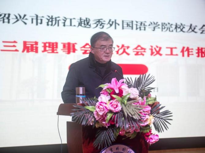徐左平会长向全体理事分别作了《浙江越秀外国语学院校友会第三届理事会三次会议工作报告》和制定《绍兴市浙江越秀外国语学院校友总会五年建设规划(2022-2026年)工作报告》。徐会长在“三届三次理事会”工作报告中指出:2021年,学校校友总会以高质量完成建校40周年校庆筹备工作任务为主要抓手,在全力做好校友联系、捐赠筹资和建校40周年校史,优秀教师、校友风采录编撰等工作的同时,扎实推进校友会、基金会建设工作的深化、提质,在骨干校友队伍拓展、捐赠工作机制完善,服务校友举措细化,整体工作质量提高,创新工作特色,凸显建设成效,优化工作环境等方面实现了新进展和新突破。在回顾和肯定2021年校友工作成绩的同时,徐会长对当前校友工作中存在的不足进行了分析,并对2022年的校友工作提出了新的思路和目标,对建设越秀特色服务校友工作机制和高质量校友会提出了更高层次的要求。
