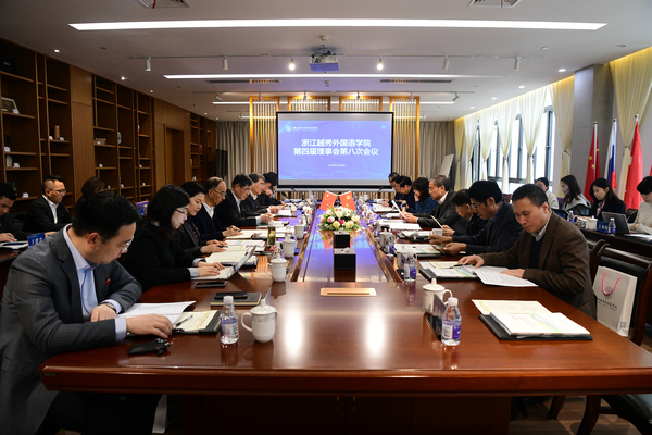 3月28日上午,浙江越秀外国语学院第四届理事会第八次会议在镜湖校区召开。理事长胡柏藩及理事张平一、胡柏剡、石观群、杜世嘉、钱伟平、徐真华、费君清、叶兴国、朱文斌、徐瑛出席会议。监事赵嘉、王建忠、高志栋列席会议。会议由胡柏藩主持。