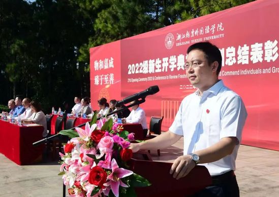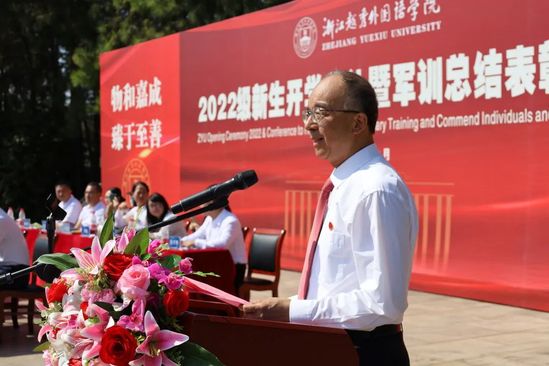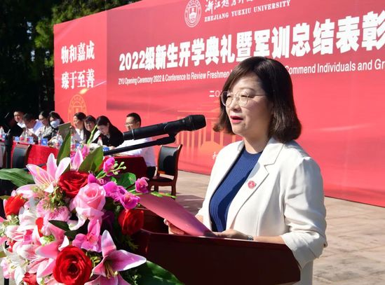 9月25日上午,我校2022级新生开学典礼暨军训总结表彰大会在镜湖、稽山两校区举行。校长叶兴国、特聘教授费君清、常务副校长魏小琳、副校长陈文涛、副校长葛金玲、党委副书记高志栋、党委副书记高琴波、校长助理王建忠出席典礼。学校各二级学院、职能部处负责人、优秀校友代表、2022级新生班主任、辅导员莅临现场观看。典礼分别由魏小琳、高志栋主持。