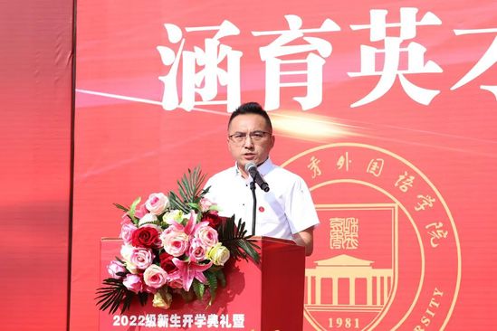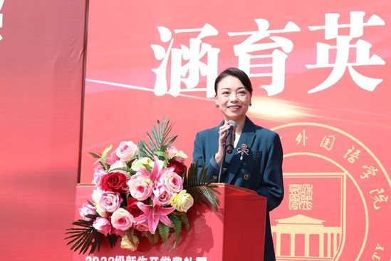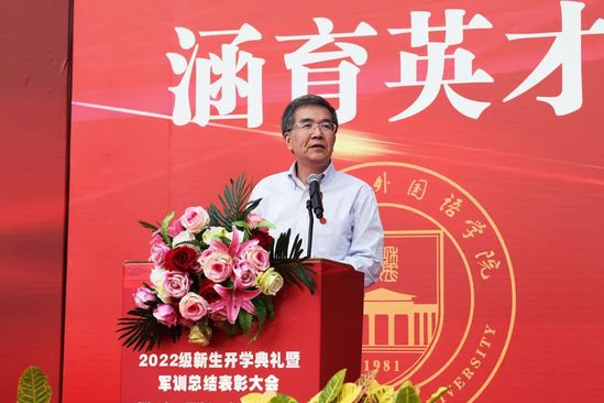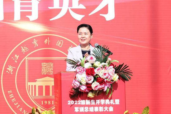 数字贸易学院康雪芹教授和应用外语学院院长曹宇晖作为教师代表发言。康雪芹在讲话中指出,在百年之大变局下,新生应勇于挑战自我,用奋斗留下青春的成长足迹。曹宇辉表示,希望同学们能将遇到困难不退缩,迎难而上的精神从军训带到日常学习和生活中,合理规划自己的时间,挥别过去,早日适应大学生活。
