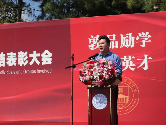 2003届英语专业毕业生曾险校友、2013届国际经济与贸易毕业生林晓校友作为优秀校友向新生分享了自己的经历。他们鼓励学弟学妹们大步向前,去挑战、去逐梦,努力成为新时代国家建设的栋梁之材。