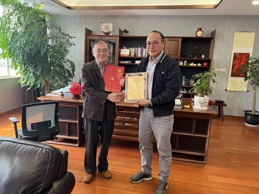 捐赠签约仪式后,徐左平会长还向朱重阳校友颁发了捐赠证书及捐赠铭牌。
