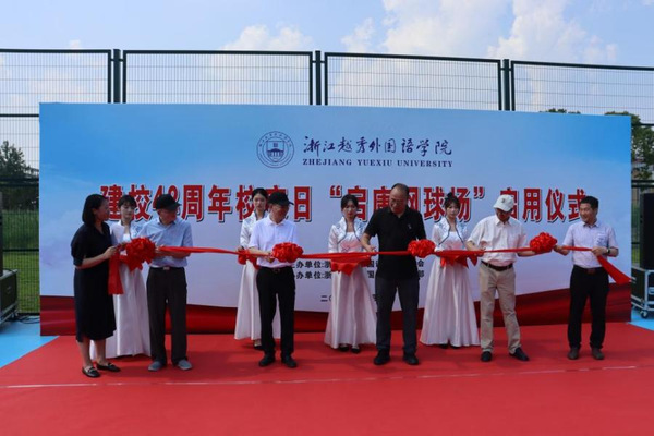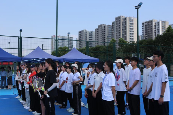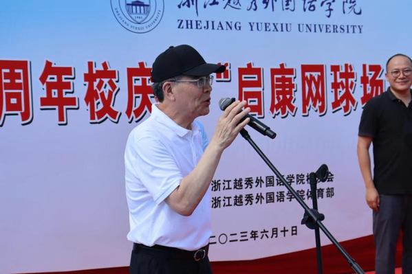6月10日下午,作为学校建校42周年校庆系列活动之一的“启康网球场”启用仪式在我校镜湖校区举行。学校校长叶兴国、特聘教授费君清、校友总会会长徐左平、党校办主任陈园进、后勤保障处处长张晓波、基建处处长朱春旭、体育部副主任李德奇,“启康网球场”捐建者朱重阳校友、绍兴越秀校友会会长曾险,以及部分校友和师生代表出席仪式。本次活动由学校校友会主办,体育部、绍兴越秀校友会协办。体育部主任张岚主持仪式。