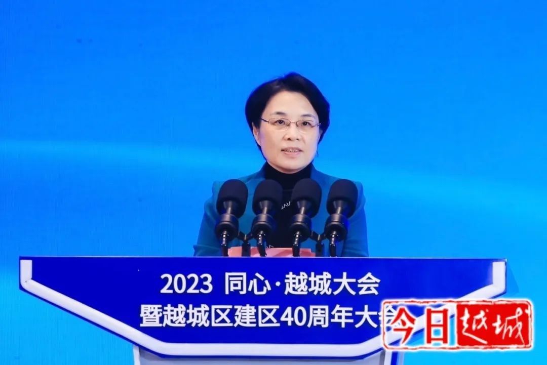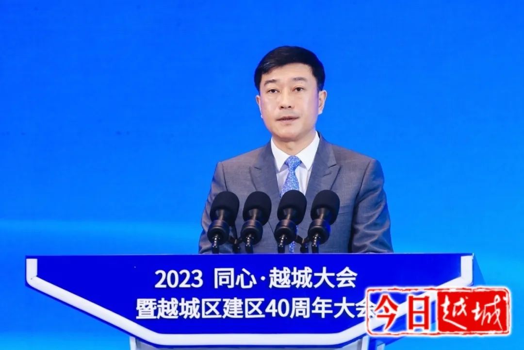 徐军对出席大会的各位嘉宾表示热烈欢迎,并以“潮起四十载、同心向未来”为主题作主旨演讲。他说,越城悠久的历史、灿烂的文化、辉煌的成就,源于水、基于水、因于水。四十年来,越城学习水的至柔至刚、随方亦圆、包容万象,创出了一部改革史、一部创新史、一部开放史、一部为民史,实现了翻天覆地的精彩蝶变。