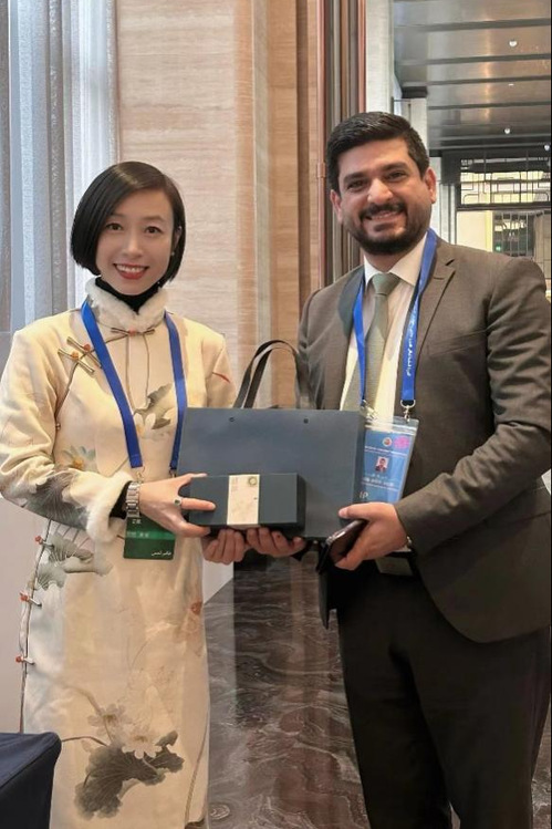 (▲校友王斌与伊拉克新闻集团行政事务负责人哈桑·沙尔汗·卡杜牧合影)