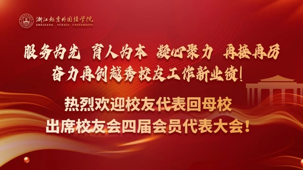 绍兴市浙江越秀外国语学院校友会第四届会员代表大会将于2024年3月16日上午9:00在浙江越秀外国语学院镜湖校区图书馆报告厅隆重举行!