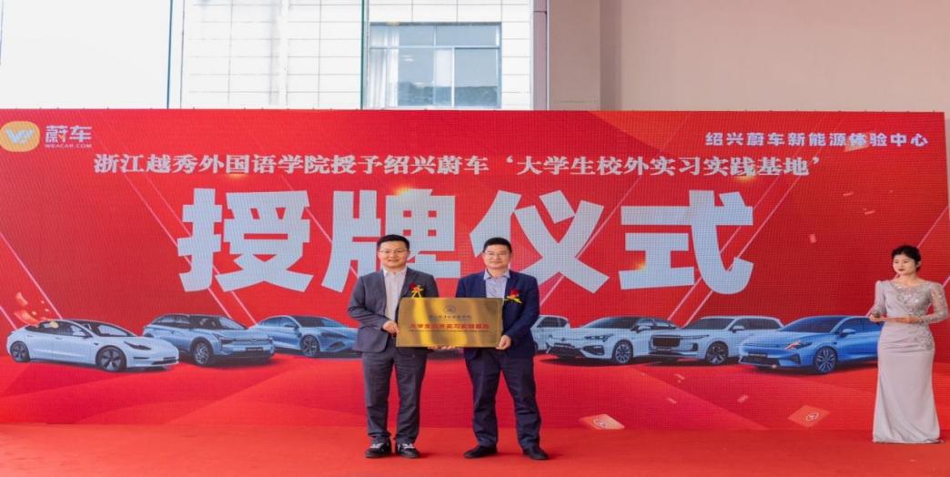 开业仪式上,蔚车还与学校数字贸易学院举行校企合作授牌仪式。蔚车与数贸学院的合作,是校企合作的典范,也是培养新时代创新人才的重要途径。通过双方的紧密合作,不仅能够为学生们提供实践平台,促进理论联系实际、探索新质生产力发展的重要平台,更能为新能源汽车行业的发展注入新的活力。双方也希望通过此次合作,共同培养适应未来市场需求的新质人才,推动绍兴新能源汽车产业的快速发展,为地方经济的繁荣做出更大的贡献,共同推动新能源汽车产业的发展,为构建绿色、低碳、智能的出行环境贡献力量。