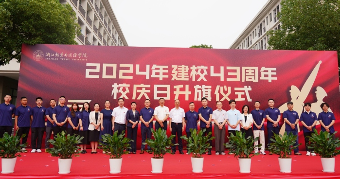 四十三年发展励精图治,四十三年办学桃李满园,四十三年探索再创辉煌。6月12日清晨,浙江越秀外国语学院举行校庆日升旗仪式,用一场庄严而隆重的升国旗仪式,共同庆祝学校43周年生日,携手开启新征程。学校校长修刚、特聘教授费君清、常务副校长魏小琳、副校长葛金玲、党委副书记高志栋、党委副书记高琴波、校友总会会长徐左平与校友代表章小军、曾险、应华亮等师生代表参加活动。费君清主持仪式。