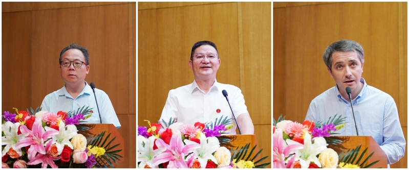 数字贸易学院院长单胜江教授、中国语言文化学院余群教授、外籍教师安东尼奥分别发言。
