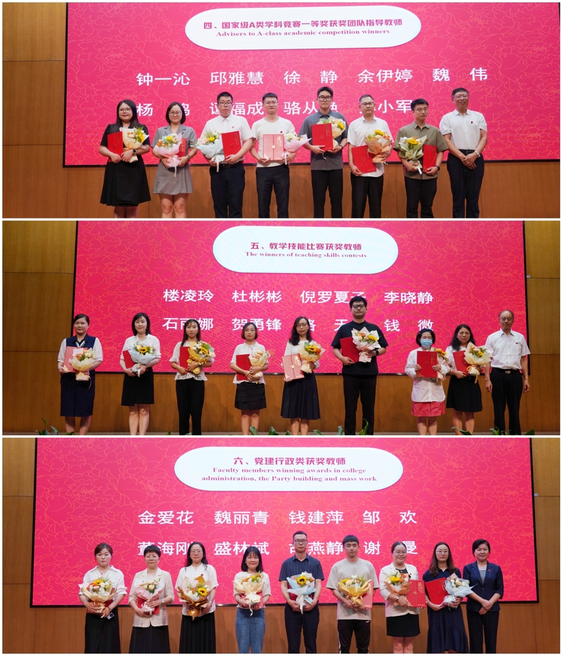 9月10日下午,我校庆祝第40个教师节暨优秀教师表彰大会在镜湖校区图书馆报告厅举行。会议表彰了过去一学年取得突出成绩的集体和个人,举行了退休教师荣休仪式、30年以上校龄教职工表彰仪式。学校校长修刚、特聘教授费君清、副校长陈文涛、副校长葛金玲、党委副书记兼纪委书记高志栋、党委副书记兼财务总监高琴波、校友总会会长徐左平,校友代表浙江纽特克思进出口有限公司副总经理黄新明、普特教育创始人冯迪洋出席会议。会议由常务副校长魏小琳主持。