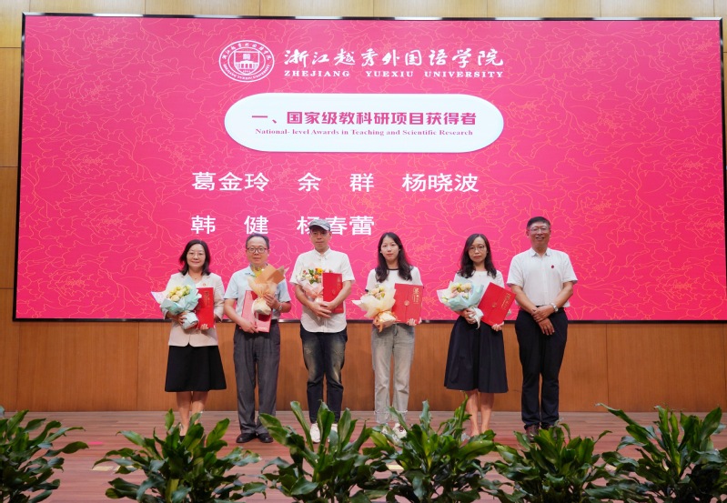 费君清宣读《浙江越秀外国语学院关于表彰2023-2024学年先进集体与个人的决定》。